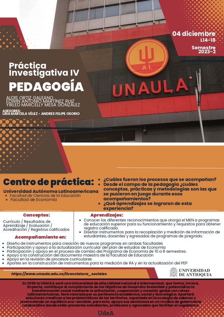 El lugar del pedagogo en UNAULA apunta a que sea un escenario de reflexión frente a las prácticas, no solamente educativas ni curriculares, sino que sea una reflexión en torno a la